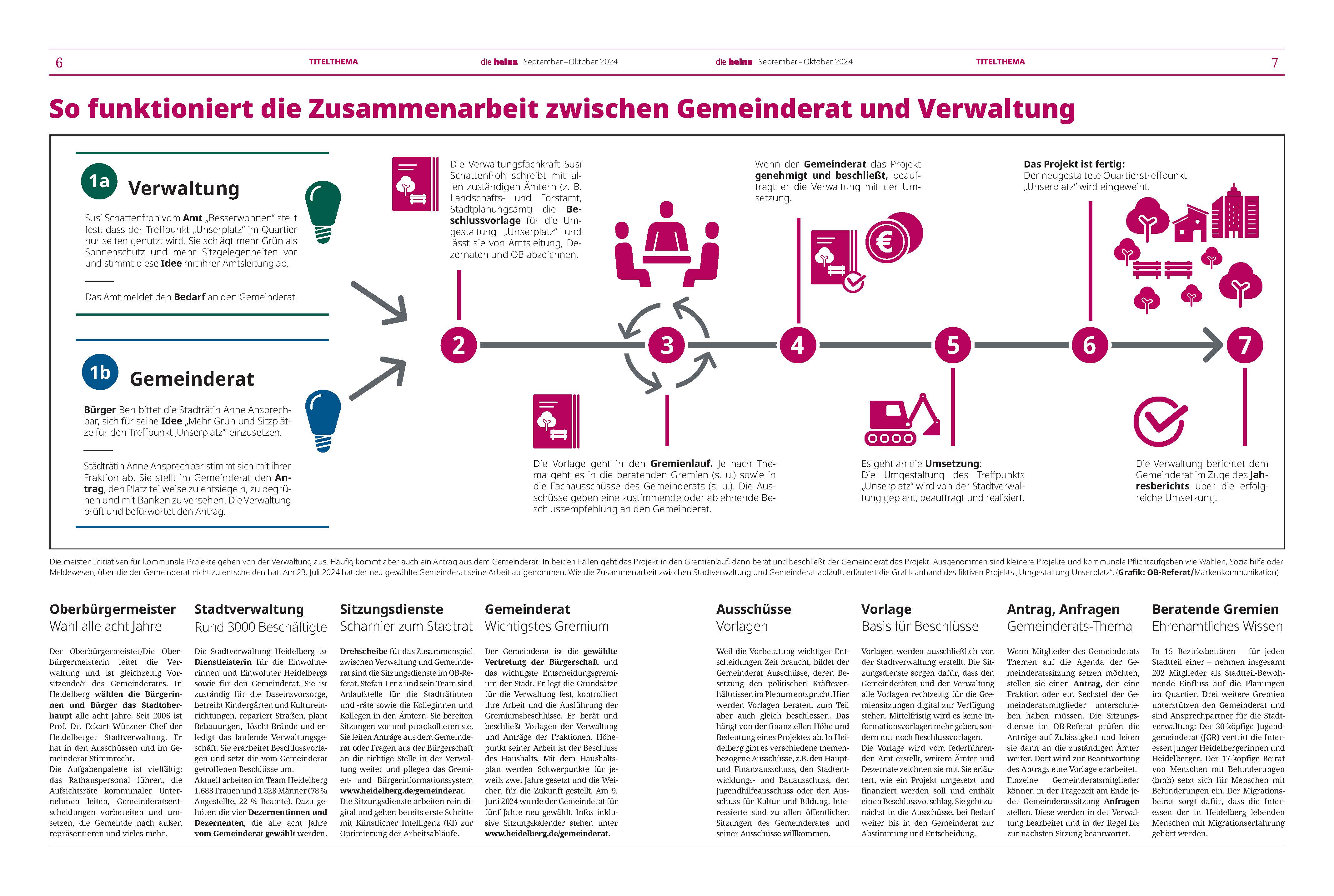Wie die Zusammenarbeit zwischen Stadtverwaltung und Gemeinderat abläuft, erläutert die Grafik anhand eines fiktiven Projekts "Neues Spielgelände für die Kita Himmelreich".
