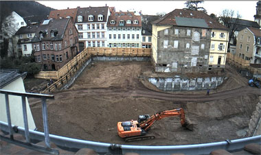 Wie sieht es aktuell auf der Theaterbaustelle aus? Welche Fortschritte machen die Arbeiten am neuen Heidelberger Theater? Wer das wissen möchte, kann jetzt via Webcam „Baustellenfernsehen“: Ab sofort überträgt die Kamera aus einem Gebäude in der Theaterstraße halbstündlich aktualisierte Bilder von der Großbaustelle im Herzen der Altstadt.