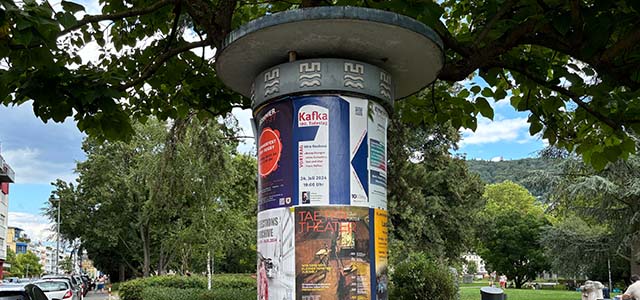 Die stadtweiten Plakatträger dienen der Werbung für Veranstaltungen, die in Heidelberg stattfinden.