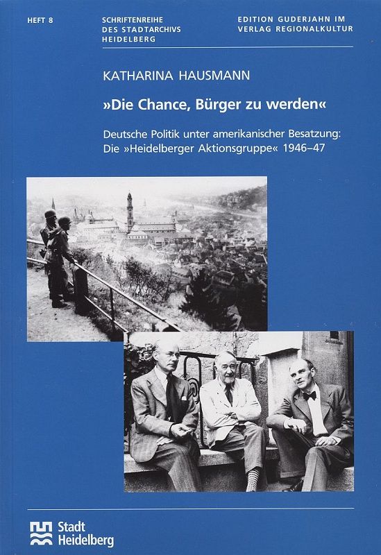 | Heft 8 Katharina Hausmann: Die Chance Bürger zu werden. Deutsche Politik unter amerikanischer Besatzung: Die Heidelberger Aktionsgruppe 1946-47. Verlag Regionalkultur & Edition Guderjahn, Heidelberg - Ubstadt-Weiher 2006. ISBN-10: 3-89735-446-2 € 14,90 |