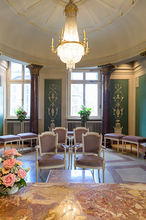 Das Trauzimmer verfügt über 12 Sitzplätze. Die maximale Personenanzahl für das Trauzimmer ist auf 20 Personen begrenzt.