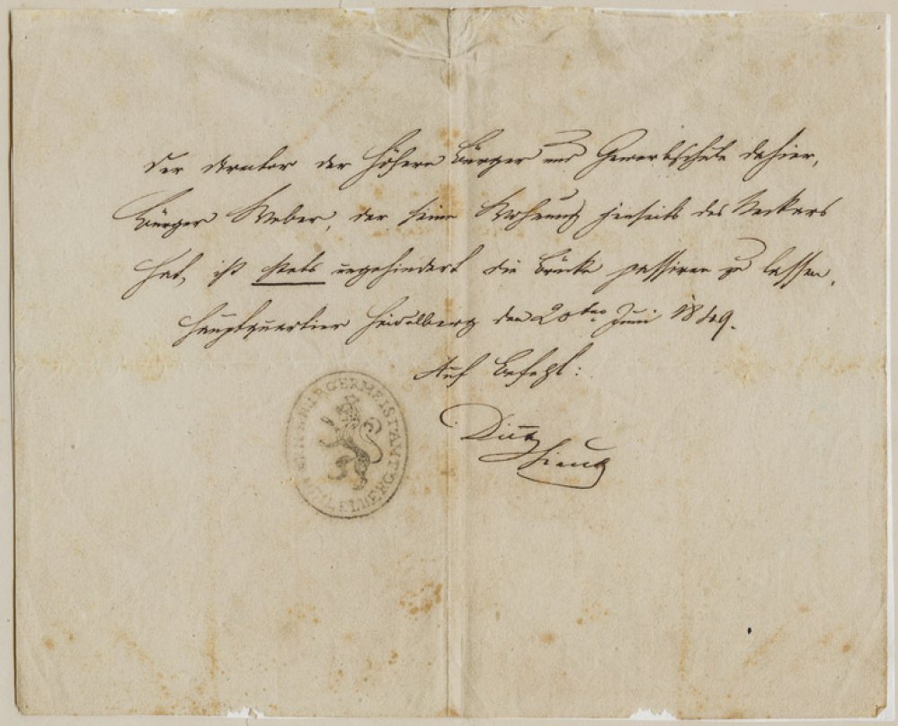 Passierschein für die Alte Brücke aus dem Jahr 1849 (Original: Dr. Karsten Weber)