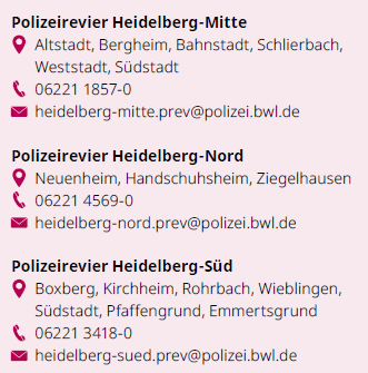 Ansprechpartnerinnen und Ansprechpartner sind unter anderem das DRK Heidelberg und/oder die Johanniter und/oder die DLRG.