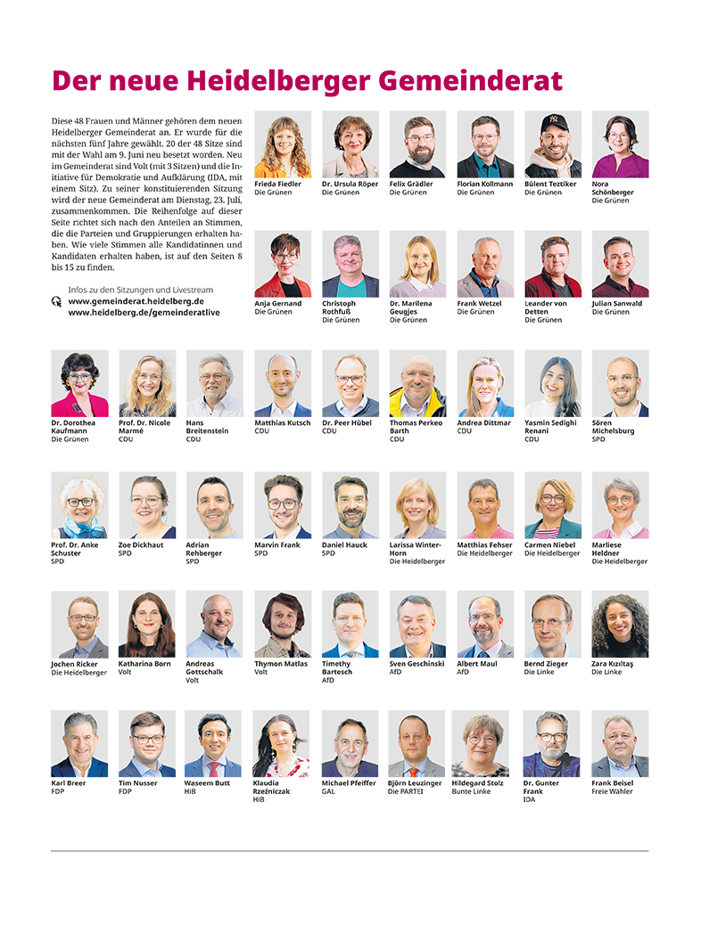 Die Tagesordnung und Sitzungsunterlagen gibt es auf www.gemeinderat.heidelberg.de