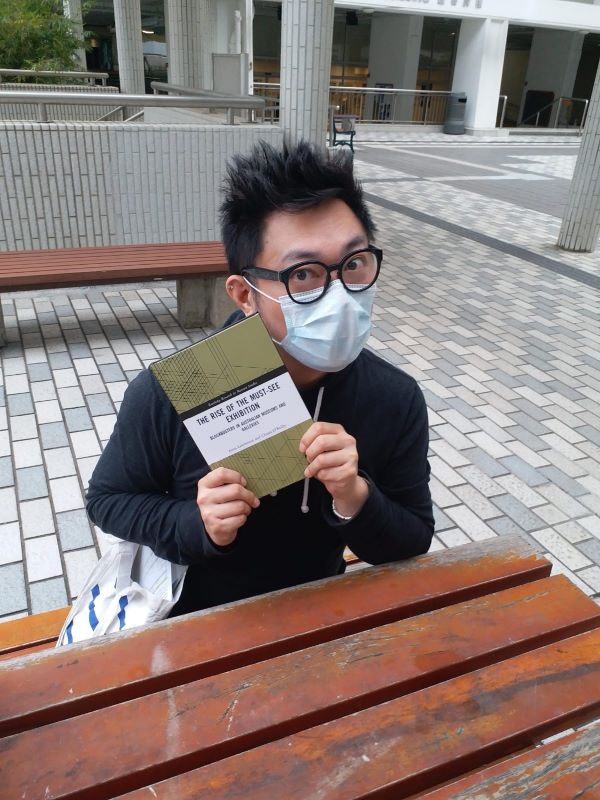 Garfield LAM proudly presenting the book "The Rise of the must-see exhibition" - a book which is not yet available. (Foto: Garfield LAM/University of Hong Kong Archives)