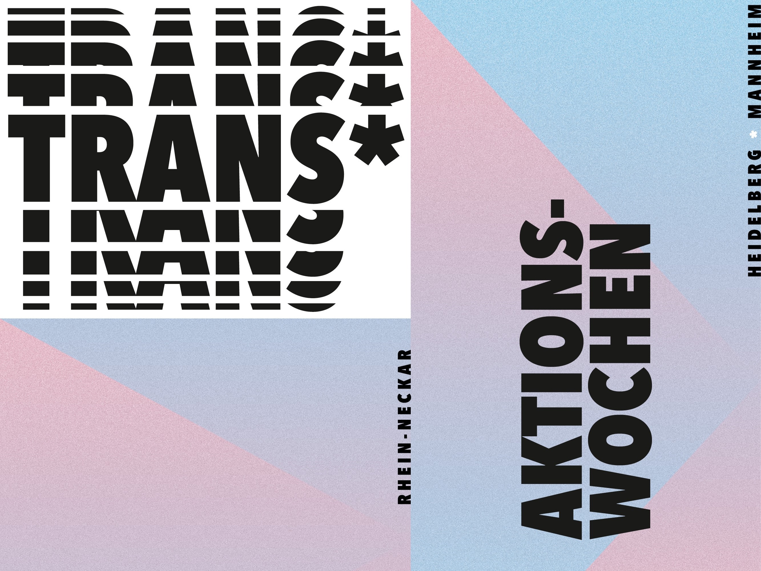 Schrift auf rosa-blauem Hintergrund: Trans*Aktionswochen Rhein-Neckar. Heidelberg. Mannheim.